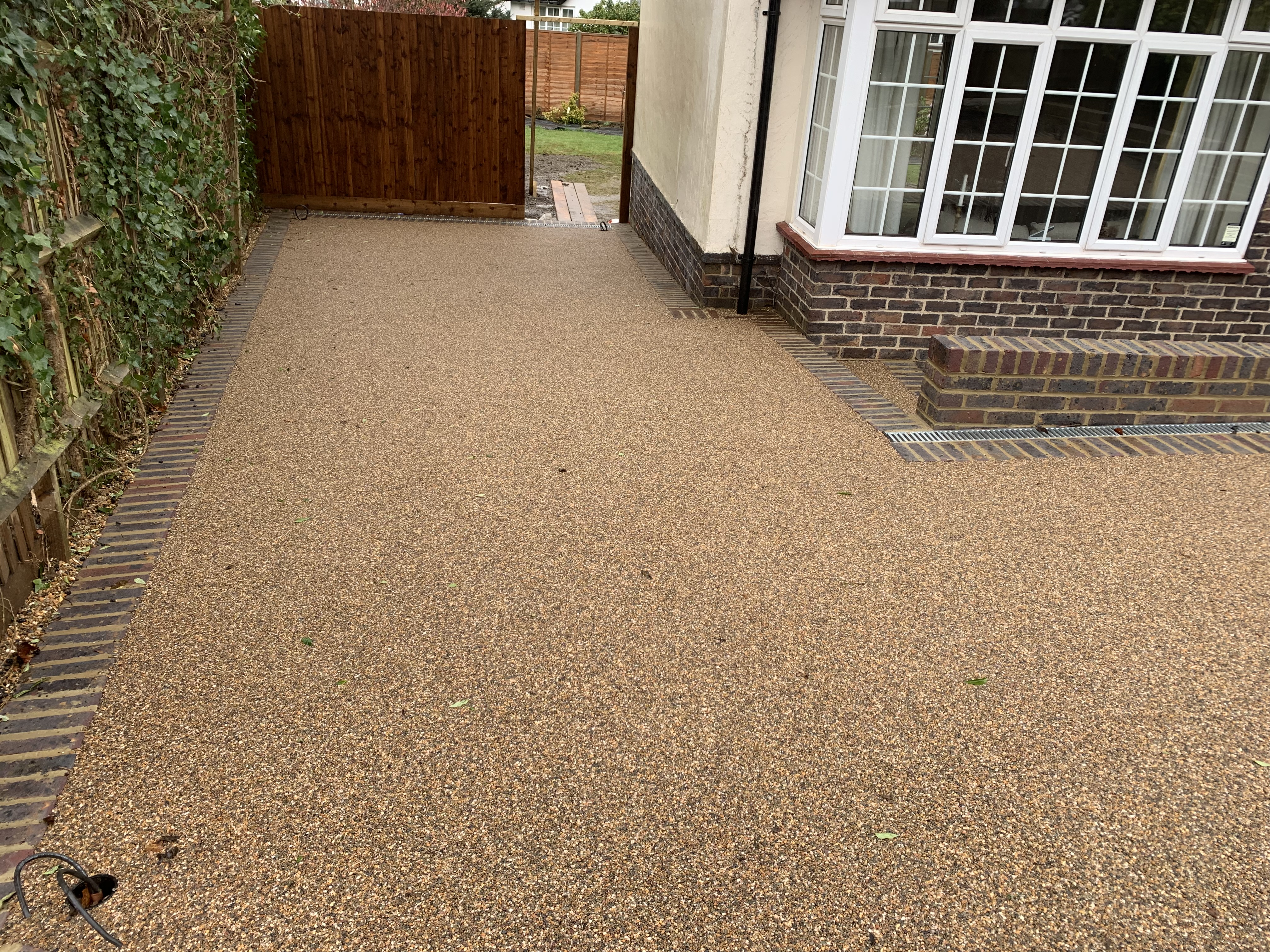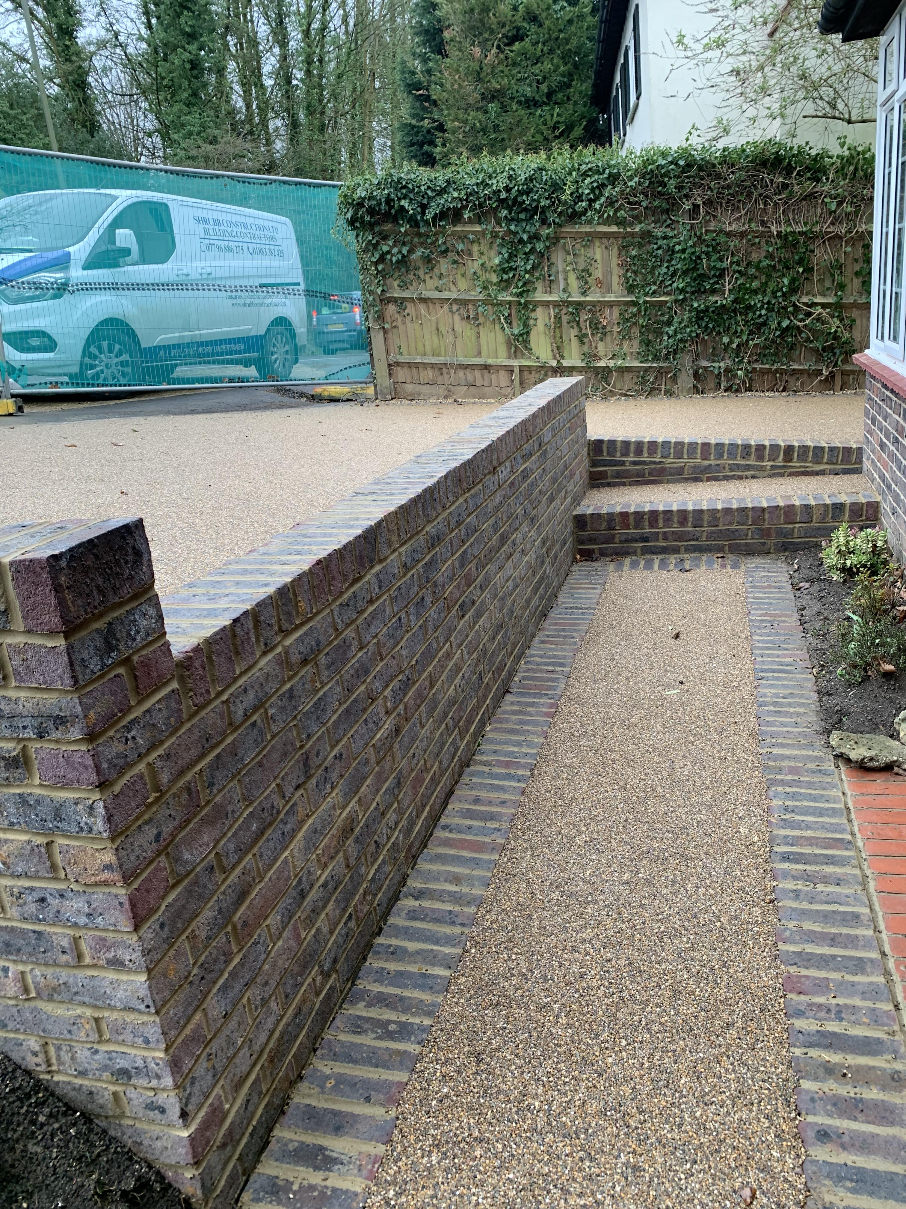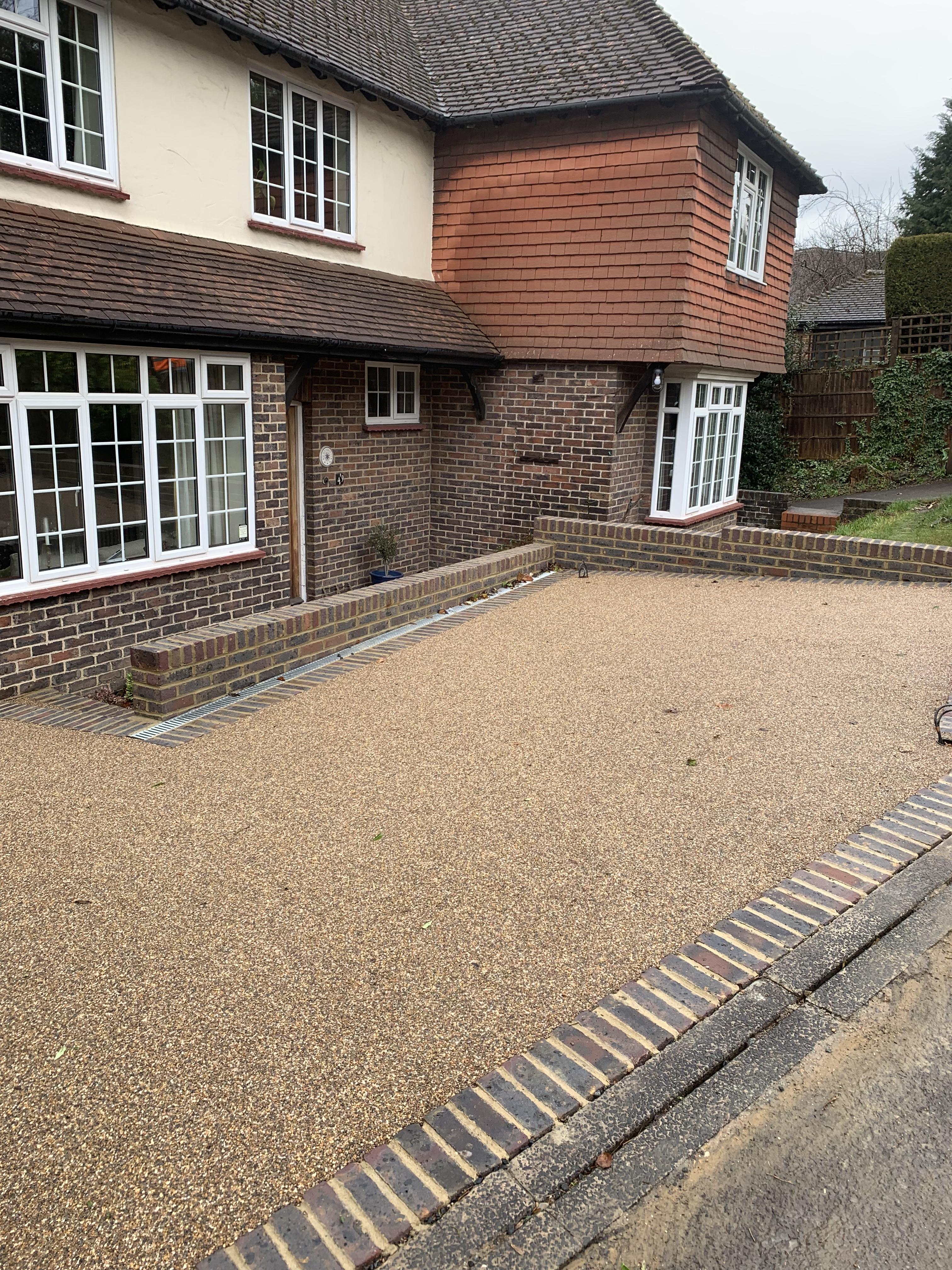 We created this space forming a new driveway, installing a new brick edgings and finishing off with sea shore resin bound.
