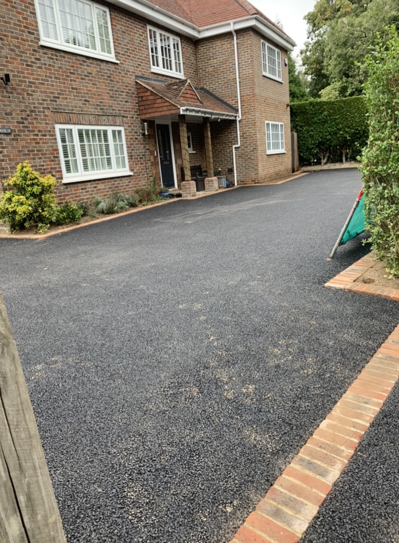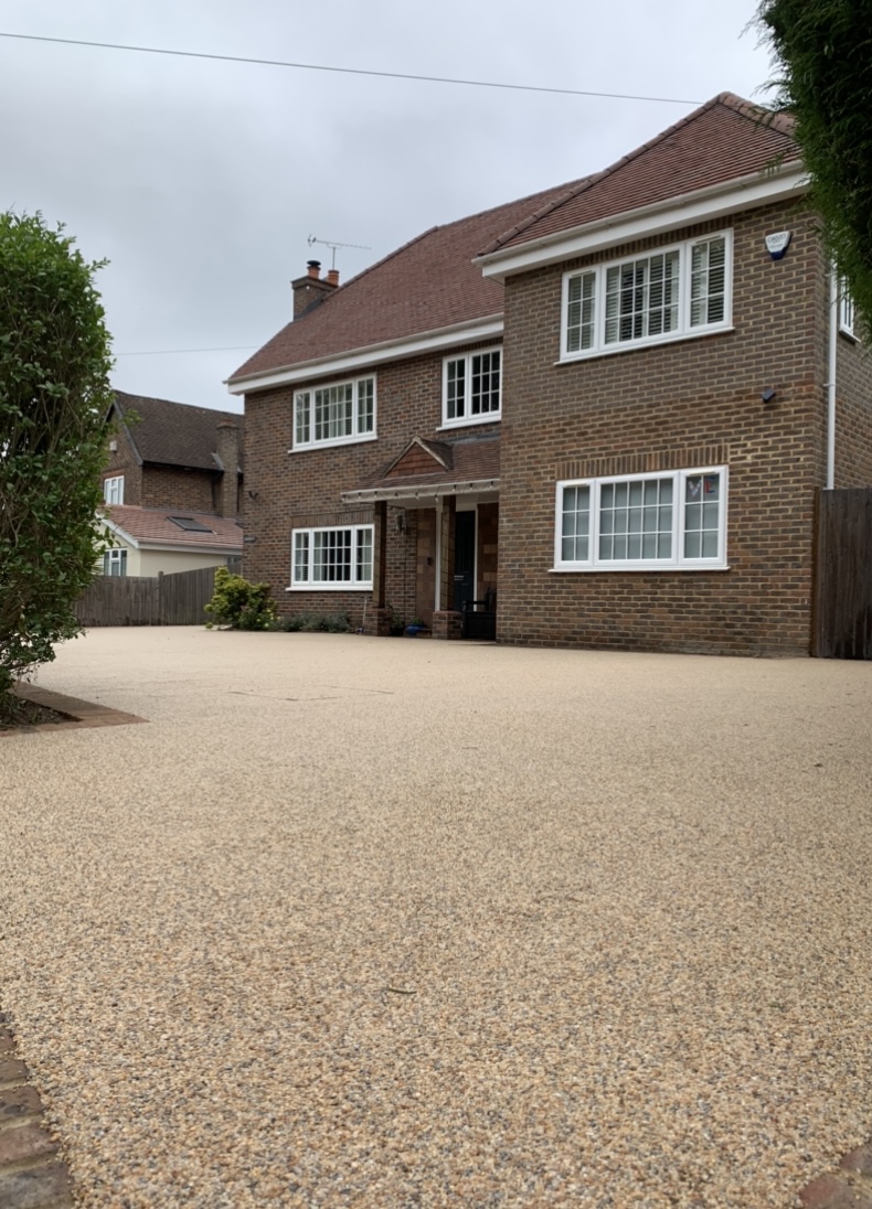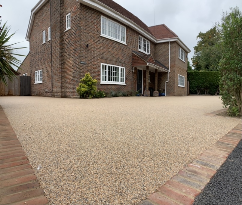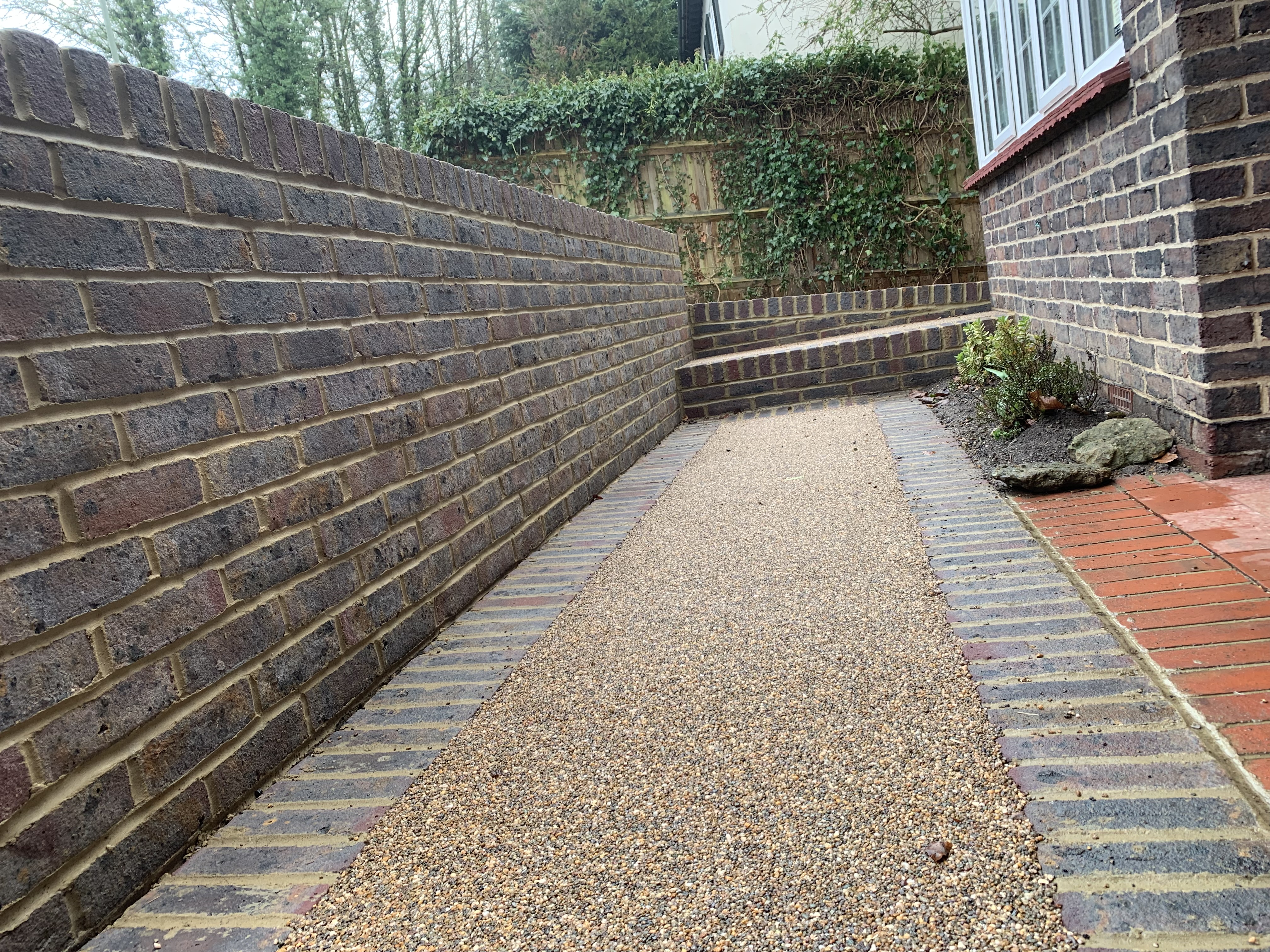 We created this space forming a new driveway, installing a new brick edgings and finishing off with sea shore resin bound.