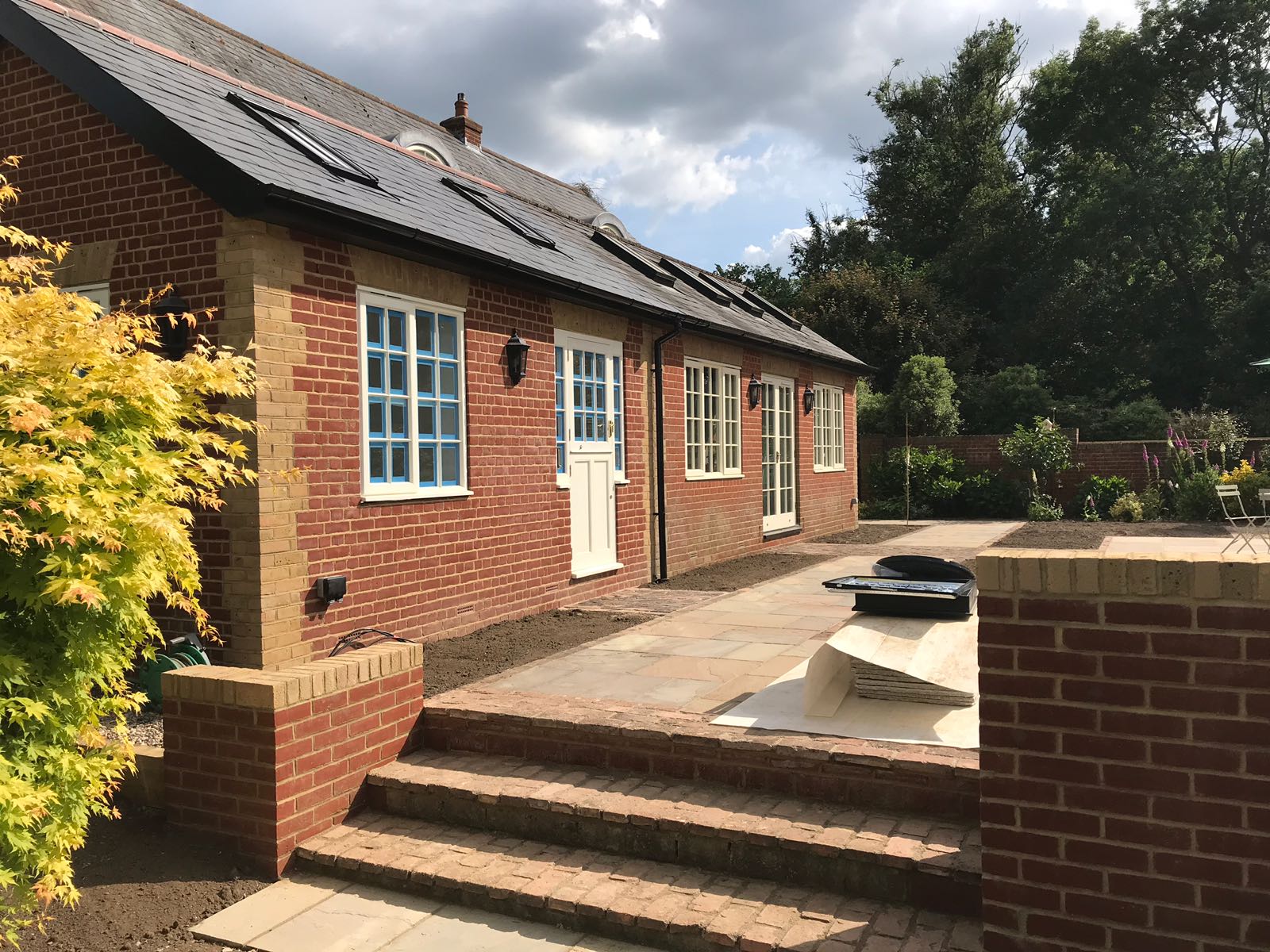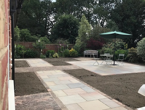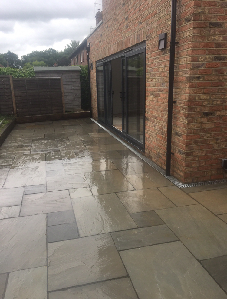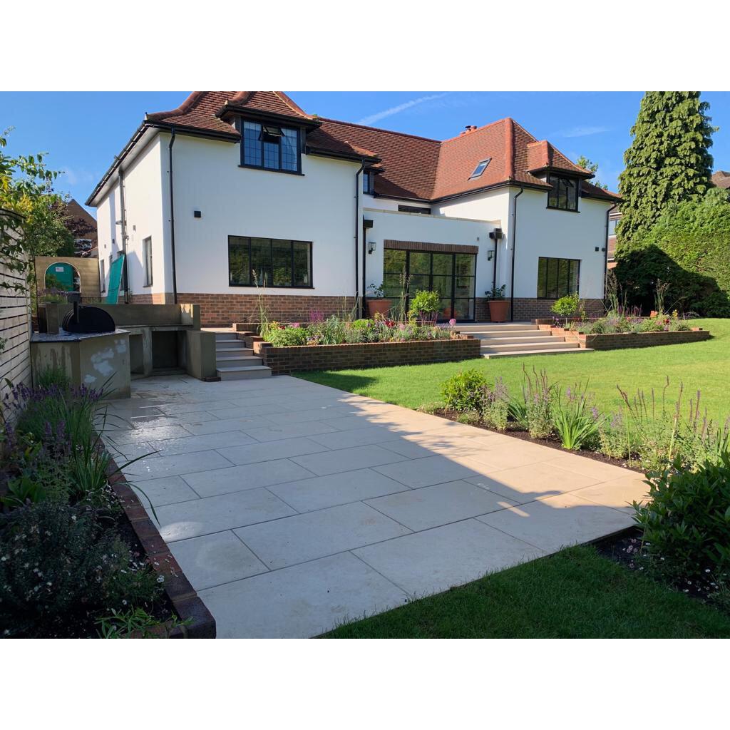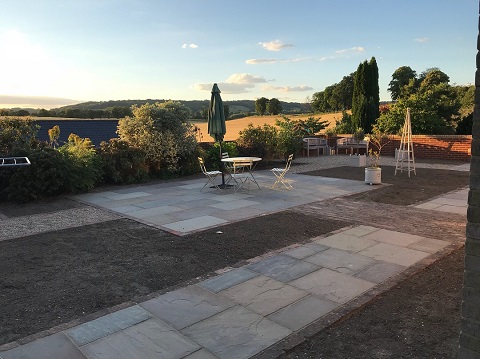 We extended this property to the side forming a painting studio to meet the customers needs and a utility room. We also transformed this once grass area to an amazing paved seating area for summer evenings to be enjoyed with breath taking views. With have used Autumn Green Indian sandstone and salvaged some of the original brick pavers from the garden putting them to good use making path ways.