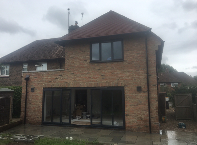 A Single storey extension in Hurst green with 2 sets of bi-folding doors. We removed the back of the house and installed new structural steels to open up the bottom floor of this lovely detached property.
