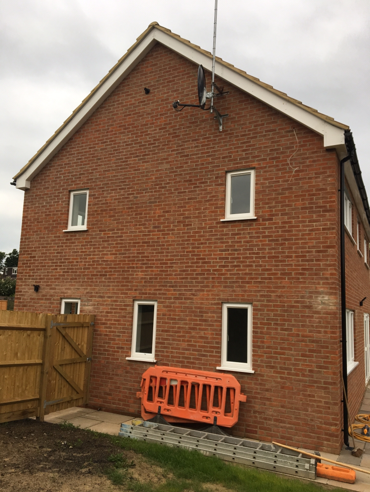 Setting out and forming the blueprint for 2 detached new builds we also erected the brickwork for the same new builds in East Grindstead, West Sussex. On this plot we have installed stone window sills provding a neat soild look. We have also added curved lintels above the windows addding some fine detail.