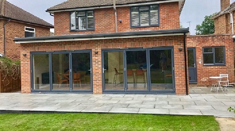 An extension project in Hurst Green this project has some beautiful brickwork with weather-tucked pointing adding some real detail to the exterior or the property, Bifold doors opening up on to a patio area. The kitchen and living room was extended on the ground floor and a bedroom was added on the first floor.