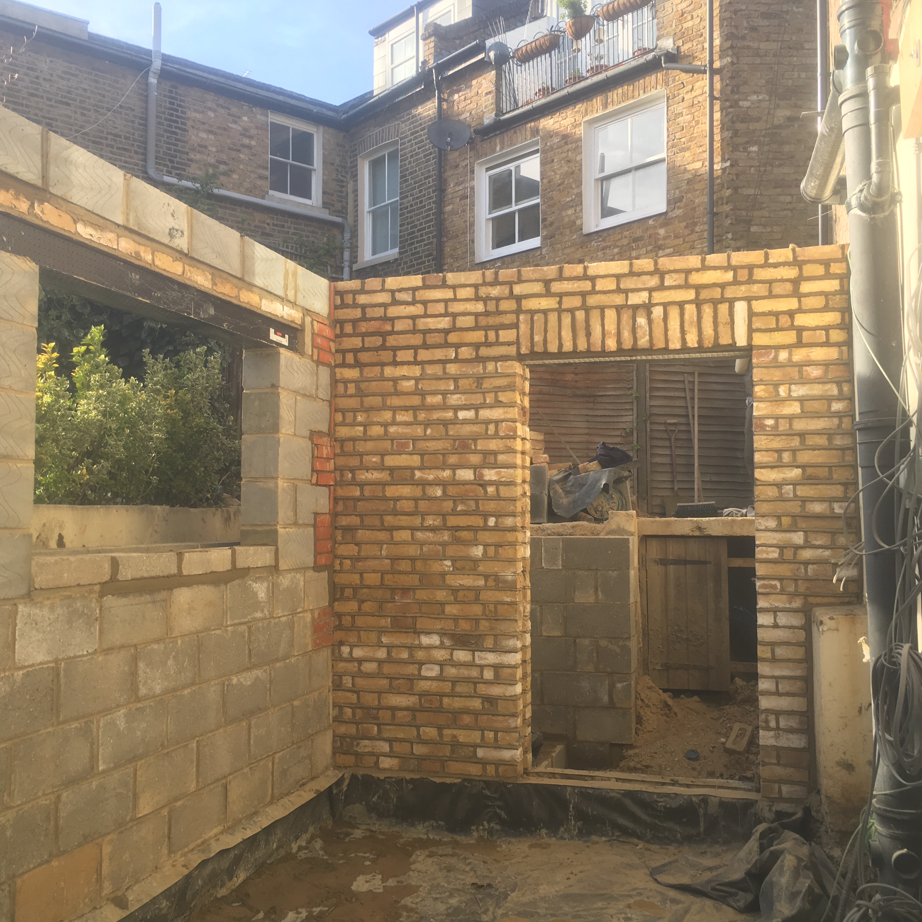 This is Brickwork for an extension we completed for a basement flat in Balham with Weather Struck pointing to match in with the Existing style of the house. The flat also has a Brick feature wall inside.