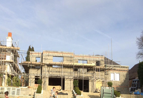 Setting out and forming the blueprint for semi detached new build we also erected the brickwork for this new build in Warlingham, Surrey.